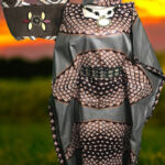 This stunning kaftan dress showcases a vibrant color with intricate geometric patterns. The flowing silhouette and comfortable fit make it perfect for any occasion. The matching headwrap completes the ensemble, adding a touch of traditional African style. This kaftan is a must-have for anyone who appreciates African fashion and wants to make a bold statement.