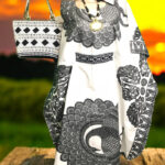 This stunning kaftan dress showcases a vibrant color with intricate geometric patterns. The flowing silhouette and comfortable fit make it perfect for any occasion. The matching headwrap completes the ensemble, adding a touch of traditional African style. This kaftan is a must-have for anyone who appreciates African fashion and wants to make a bold statement.