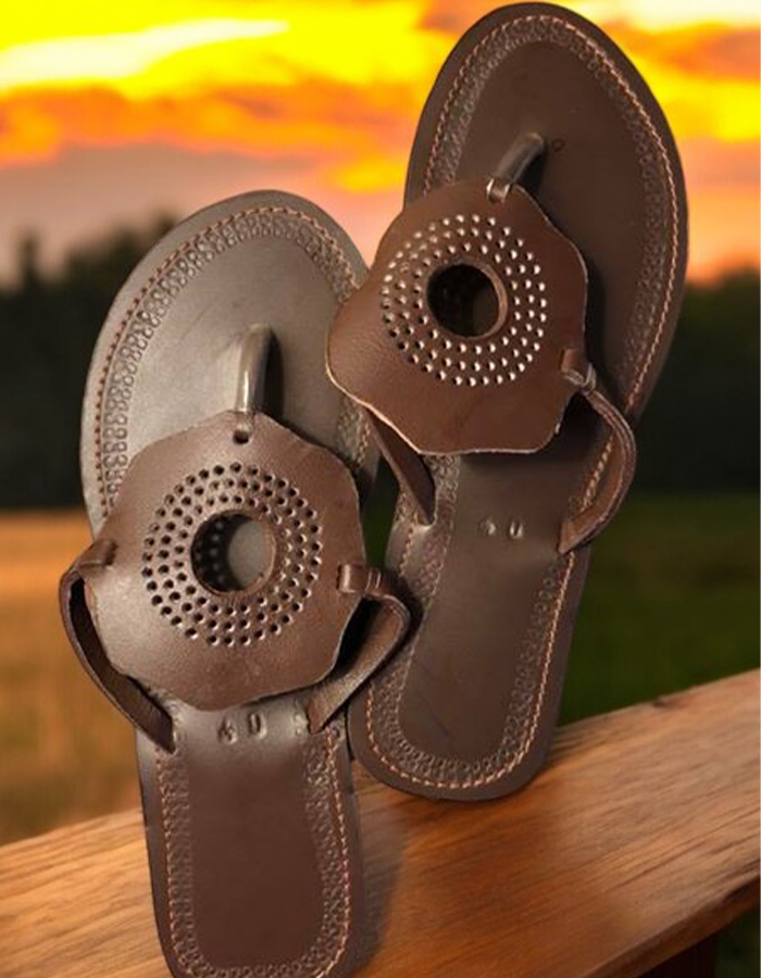 These handcrafted leather sandals offer a perfect blend of comfort and style. The rich brown color create a unique and eye-catching design. The open-toe style provides breathability and comfort, making them ideal for warm weather. Perfect for casual outings or special occasions, these sandals are a must-have for any fashion-conscious individual.