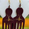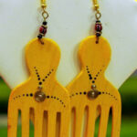 These vibrant earrings feature a unique comb shape, adorned with intricate patterns and golden accents. The deep yellow color adds a touch of sophistication, while the African-inspired design celebrates cultural heritage. Perfect for adding a bold statement to any outfit, these earrings are both stylish and meaningful.