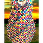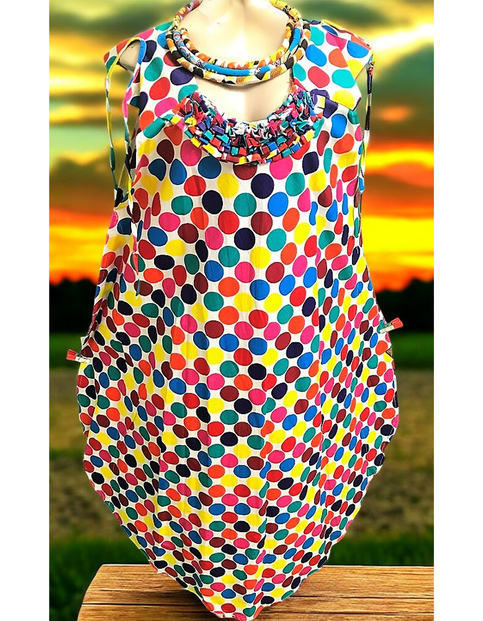 This vibrant and stylish dress features a bold pattern in vibrant shades. The off-the-shoulder design and ruffled sleeves add a touch of femininity and elegance. The comfortable fit and versatile style make it perfect for any occasion, from casual outings to special events. Pair it with jeans, a skirt, or shorts for a chic and modern look.