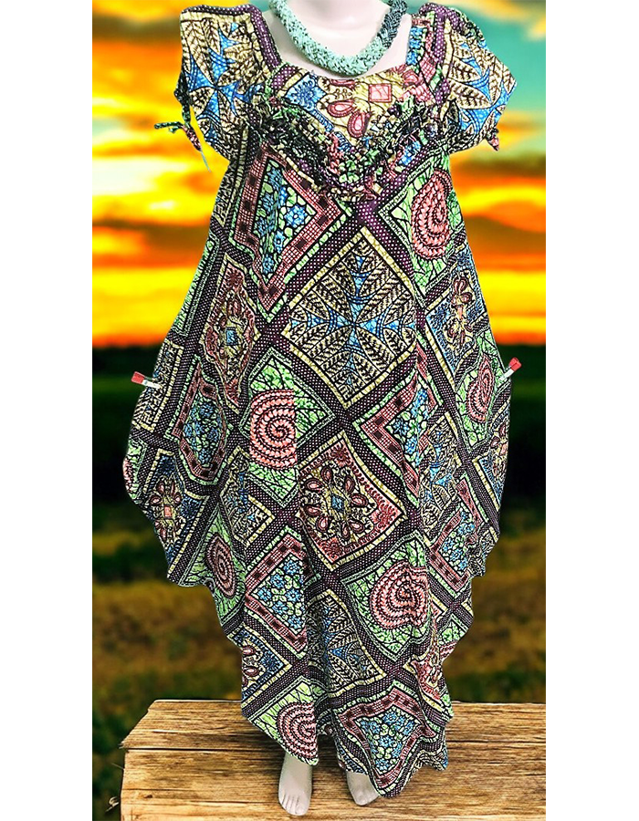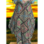 This vibrant and stylish dress features a bold pattern in vibrant shades. The off-the-shoulder design and ruffled sleeves add a touch of femininity and elegance. The comfortable fit and versatile style make it perfect for any occasion, from casual outings to special events. Pair it with jeans, a skirt, or shorts for a chic and modern look.