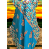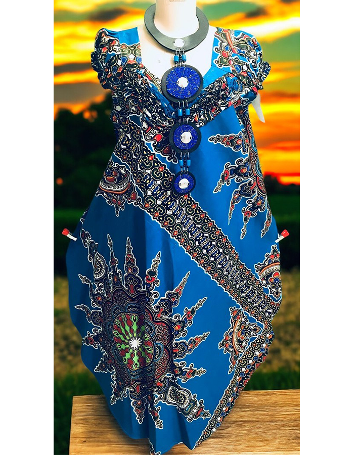 This vibrant and stylish dress features a bold pattern in vibrant shades. The off-the-shoulder design and ruffled sleeves add a touch of femininity and elegance. The comfortable fit and versatile style make it perfect for any occasion, from casual outings to special events. Pair it with jeans, a skirt, or shorts for a chic and modern look.