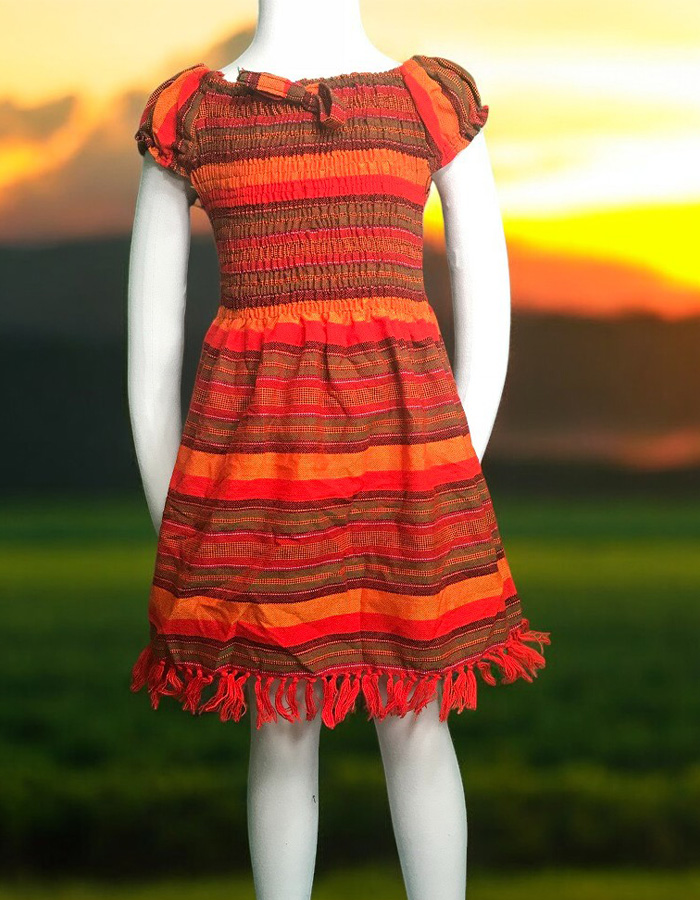 This vibrant and playful dress is perfect for young fashionistas. The off-the-shoulder design and ruffled sleeves add a touch of charm, while the bold Ankara print in vibrant color shades create a stunning visual. The comfortable fit and playful design make it ideal for any occasion, from parties to picnics. Let your little one shine in this beautiful and stylish dress.