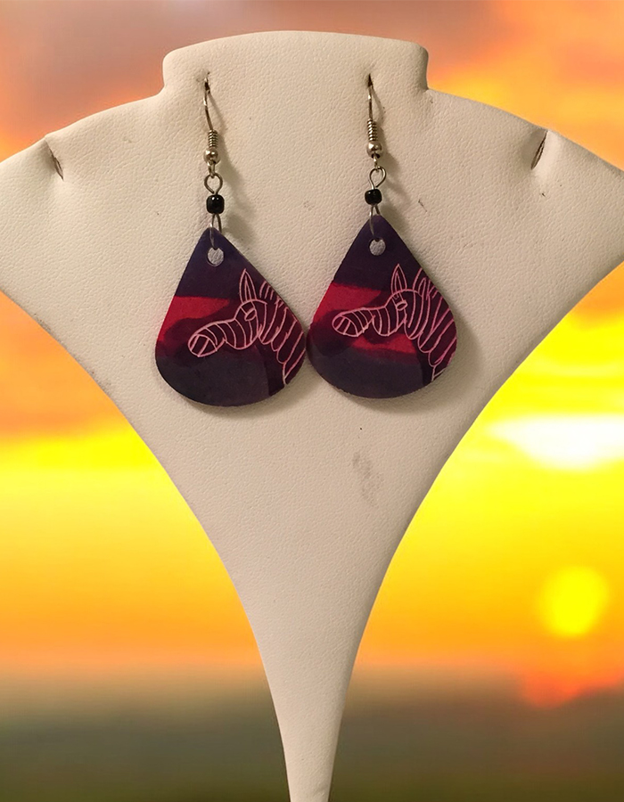 Elevate your look with these vibrant, handcrafted drop earrings featuring a bold art design. Perfect for adding a touch of African artistry to any outfit, the striking color tones reflect the beauty of a sunset over the savanna. Lightweight and comfortable, these unique earrings blend culture and fashion, making them a versatile accessory for casual or formal wear. Perfect for those who love to make a statement with meaningful, artisan-made jewelry.