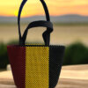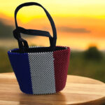 A stylish beaded handbag meticulously crafted with vibrant red, white, and blue beads. This unique accessory combines fashion with patriotism, making it a standout piece perfect for adding a bold touch to any outfit.