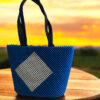 A stylish beaded handbag meticulously crafted with vibrant red, white, and blue beads. This unique accessory combines fashion with patriotism, making it a standout piece perfect for adding a bold touch to any outfit.