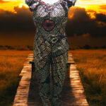 This vibrant jumpsuit is perfect for making a statement. The off-the-shoulder design and elastic waistband ensure a comfortable and flattering fit. The bold color scheme and eye-catching pattern make it a standout piece for any occasion. Pair it with sneakers for a casual look or dress it up with heels and statement jewelry for a night out.