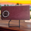This vibrant crimson clutch is crafted from a textured fabric with a subtle ombre effect, adding depth and dimension. The circular beaded embellishment in the center adds a touch of elegance and complements the bold color beautifully. The clutch features a spacious interior, perfect for carrying your essentials in style. This versatile piece is a must-have for any fashion-conscious woman.