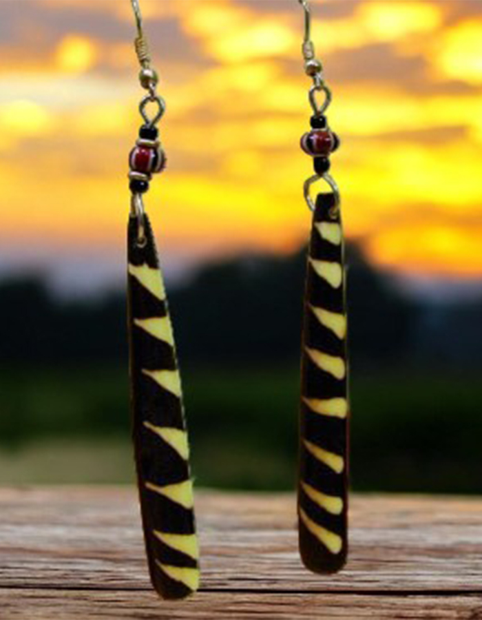 Make a statement with these bold, handcrafted tribal-inspired drop earrings. Featuring a unique black-and-yellow striped design, these earrings are lightweight yet striking, perfect for adding a touch of African elegance to any outfit. The intricate beadwork and attention to detail make them a stunning accessory for casual or formal wear.