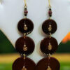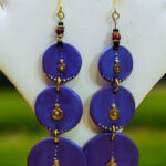 These statement earrings feature a layered design with circular discs in a rich purple hue. The contrasting gold accents and delicate white dots add a touch of sophistication. Crafted with meticulous attention to detail, these earrings are a must-have for those who appreciate bold and timeless style.