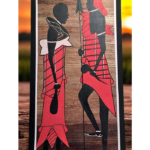 Celebrate the rich heritage of the Maasai culture with this stunning hand-painted wall art. This piece brings African artistry to life. The vibrant red and orange tones, combined with intricate detailing of their shields and spears, symbolize strength and unity. Perfect for adding a touch of African tradition and bold colors to your home decor, this artwork will be a unique and meaningful addition to any space.