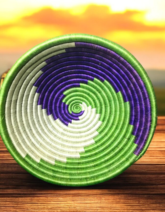 This beautifully crafted handwoven basket showcases a striking spiral design in bold and natural color tones. Its intricate pattern reflects traditional African artistry, making it a versatile decorative piece for any space. Handwoven from eco-friendly materials, this basket is not only a symbol of cultural heritage but also an eco-conscious choice for home decor. Perfect for wall art or as a centerpiece, its vibrant color accents add a touch of elegance to any room. Elevate your décor with this authentic, handwoven piece.
