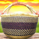 This artisan basket, handwoven from natural fibers, blends tradition with utility. The sturdy handle and textured weave make it ideal for home décor or carrying essentials. Its earthy tones and meticulous craftsmanship celebrate the beauty of African heritage, offering both durability and charm.