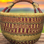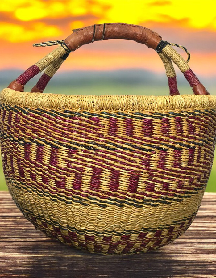 This artisan basket, handwoven from natural fibers, blends tradition with utility. The sturdy handle and textured weave make it ideal for home décor or carrying essentials. Its earthy tones and meticulous craftsmanship celebrate the beauty of African heritage, offering both durability and charm.