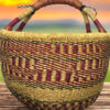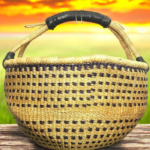 This artisan basket, handwoven from natural fibers, blends tradition with utility. The sturdy handle and textured weave make it ideal for home décor or carrying essentials. Its earthy tones and meticulous craftsmanship celebrate the beauty of African heritage, offering both durability and charm.