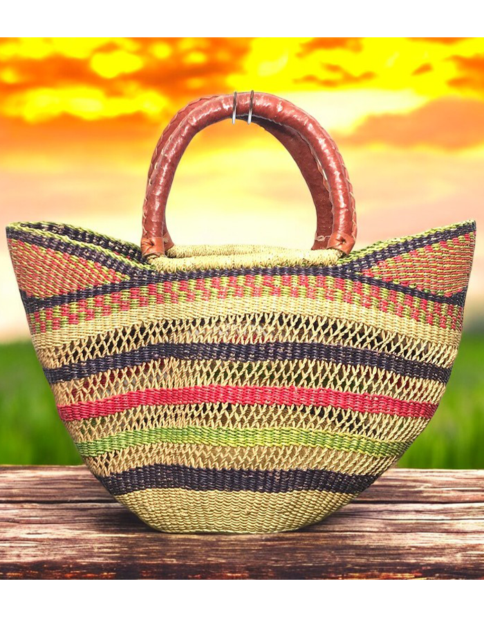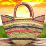 This artisan basket, handwoven from natural fibers, blends tradition with utility. The sturdy handle and textured weave make it ideal for home décor or carrying essentials. Its earthy tones and meticulous craftsmanship celebrate the beauty of African heritage, offering both durability and charm.