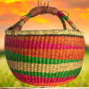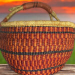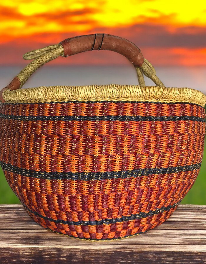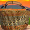 This artisan basket, handwoven from natural fibers, blends tradition with utility. The sturdy handle and textured weave make it ideal for home décor or carrying essentials. Its earthy tones and meticulous craftsmanship celebrate the beauty of African heritage, offering both durability and charm.