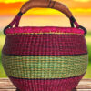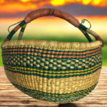 This artisan basket, handwoven from natural fibers, blends tradition with utility. The sturdy handle and textured weave make it ideal for home décor or carrying essentials. Its earthy tones and meticulous craftsmanship celebrate the beauty of African heritage, offering both durability and charm.