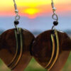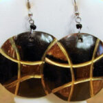 These captivating earrings feature a circular design with intricate geometric patterns carved into natural ebony. The contrasting dark hues and detailed craftsmanship create a truly unique and eye-catching piece. Perfect for adding a touch of sophistication and elegance to any outfit, these earrings are a celebration of African artistry.