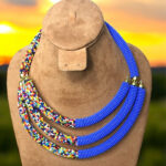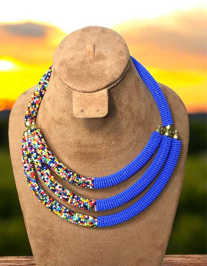 This stunning necklace showcases intricate beadwork in vibrant colors, inspired by the rich traditions of the Maasai people. The bold design and high-quality beads make it a statement piece that will elevate any outfit. Perfect for adding a touch of African elegance to your wardrobe.