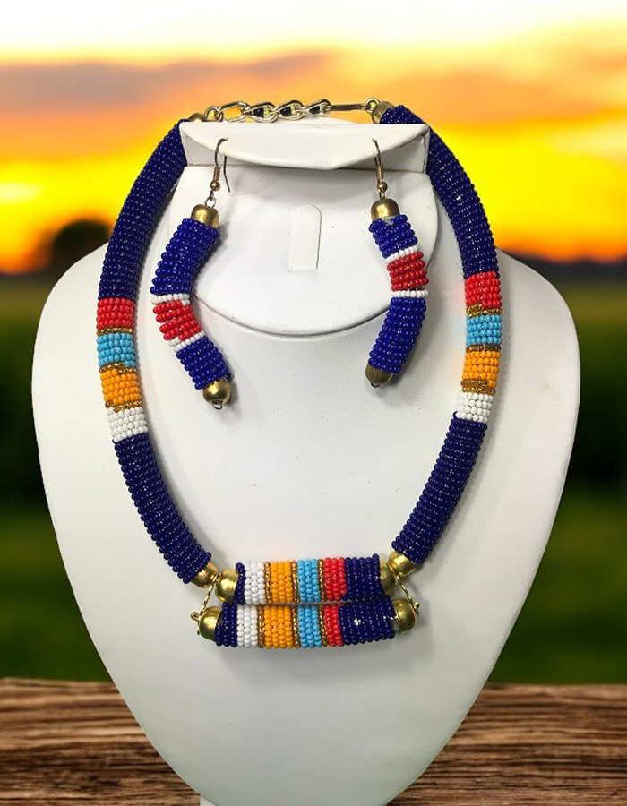 This stunning necklace showcases intricate beadwork in vibrant colors, inspired by the rich traditions of the Maasai people. The bold design and high-quality beads make it a statement piece that will elevate any outfit. Perfect for adding a touch of African elegance to your wardrobe.