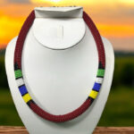 This stunning necklace showcases intricate beadwork in vibrant colors, inspired by the rich traditions of the Maasai people. The bold design and high-quality beads make it a statement piece that will elevate any outfit. Perfect for adding a touch of African elegance to your wardrobe.