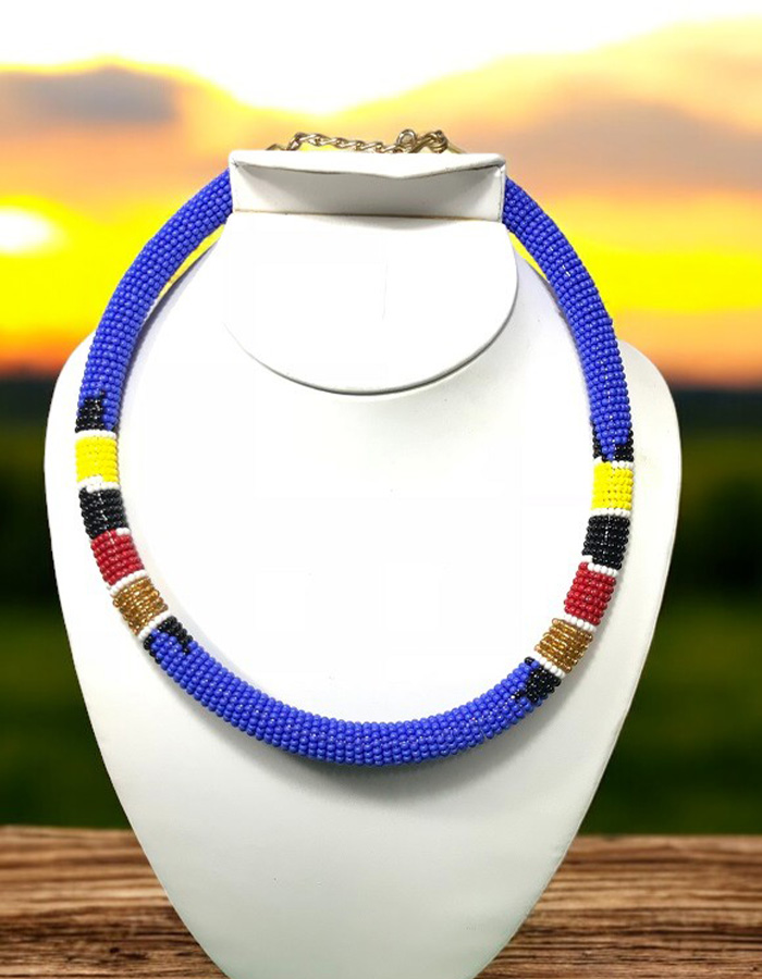 This stunning necklace showcases intricate beadwork in vibrant colors, inspired by the rich traditions of the Maasai people. The bold design and high-quality beads make it a statement piece that will elevate any outfit. Perfect for adding a touch of African elegance to your wardrobe.