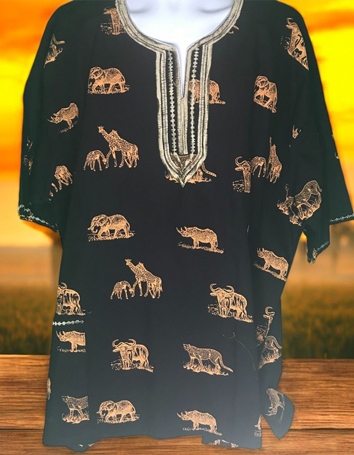 Step into the wild with this eye-catching Safari Adventure Dashiki! Featuring a beautiful blend of traditional dashiki design and detailed African wildlife prints. The intricate embroidery around the neckline adds a striking contrast, enhancing the cultural essence of the garment. Perfect for casual outings or special occasions, this lightweight and comfortable shirt lets you express your adventurous side with style and grace. A must-have for lovers of bold patterns and African-inspired fashion!