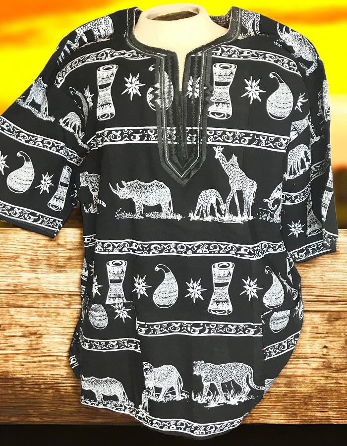 Step into the wild with this eye-catching Safari Adventure Dashiki! Featuring a beautiful blend of traditional dashiki design and detailed African wildlife prints. The intricate embroidery around the neckline adds a striking contrast, enhancing the cultural essence of the garment. Perfect for casual outings or special occasions, this lightweight and comfortable shirt lets you express your adventurous side with style and grace. A must-have for lovers of bold patterns and African-inspired fashion!