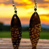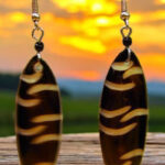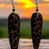 These captivating earrings feature a bold oval design with intricate sunburst patterns, crafted from natural zebrawood. The contrasting dark brown and white stripes create a visually striking effect, while the silver-toned accents add a touch of elegance. Perfect for adding a touch of sophistication to any outfit, these earrings are a celebration of African artistry and style.
