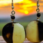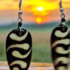 These captivating earrings feature a bold circular design with intricate patterns, crafted from natural zebrawood. The contrasting white and dark stripes create a visually striking effect, while the silver-toned accents add a touch of elegance. Perfect for adding a touch of sophistication to any outfit, these earrings are a celebration of African artistry and style.