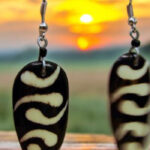 These captivating earrings feature a bold oval design with intricate sunburst patterns, crafted from natural zebrawood. The contrasting black and white stripes create a visually striking effect, while the silver-toned accents add a touch of elegance. Perfect for adding a touch of sophistication to any outfit, these earrings are a celebration of African artistry and style.