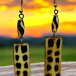 These captivating earrings feature a bold rectangular design with intricate sunburst patterns, crafted from natural zebrawood. The contrasting dark and white stripes create a visually striking effect, while the silver-toned accents add a touch of elegance. Perfect for adding a touch of sophistication to any outfit, these earrings are a celebration of African artistry and style.