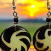 These captivating earrings feature a bold circular design with intricate sunburst patterns, crafted from natural zebrawood. The contrasting white stripes create a visually striking effect, while the silver-toned accents add a touch of elegance. Perfect for adding a touch of sophistication to any outfit, these earrings are a celebration of African artistry and style.