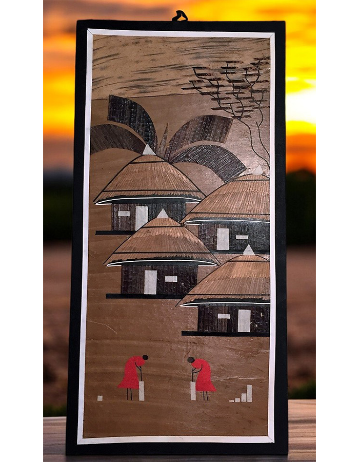 This captivating wall art showcases art, intricately crafted from natural fibers and set against a vibrant backdrop. The intricate details and rich textures bring the canvas to life, adding a touch of African lifestyle to your home or office. This unique piece is a must-have for nature lovers and art enthusiasts alike.