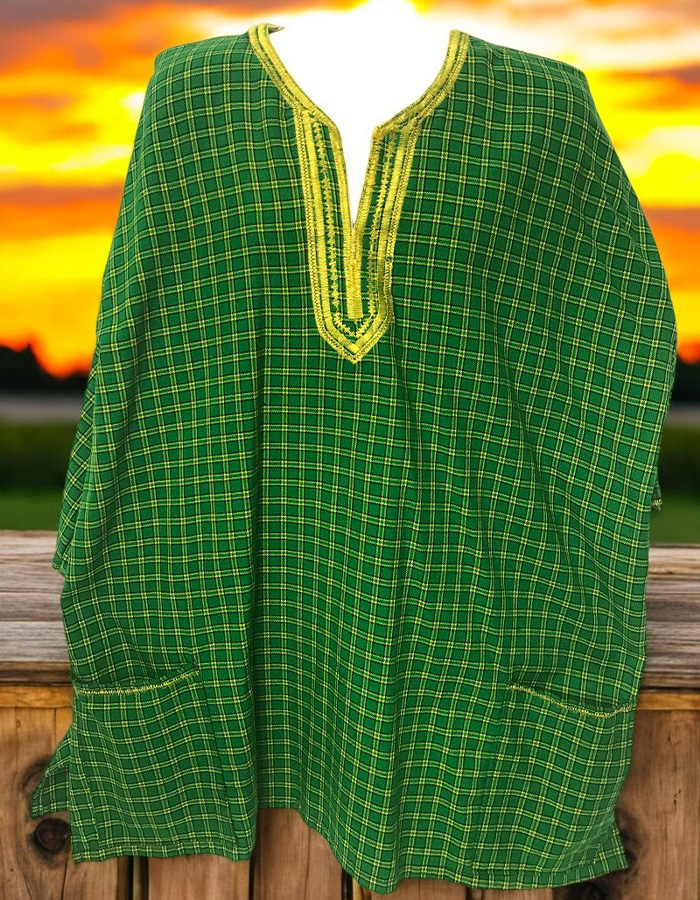 Embrace cultural elegance with this Traditional Plaid Dashiki Shirt. The vibrant colors plaid pattern is complemented by intricate embroidery along the neckline. Featuring two front pockets for added convenience, this lightweight and breathable shirt offers both style and comfort. Perfect for casual or formal events, this timeless piece captures a blend of tradition and modern flair, making it an ideal addition to your wardrobe.