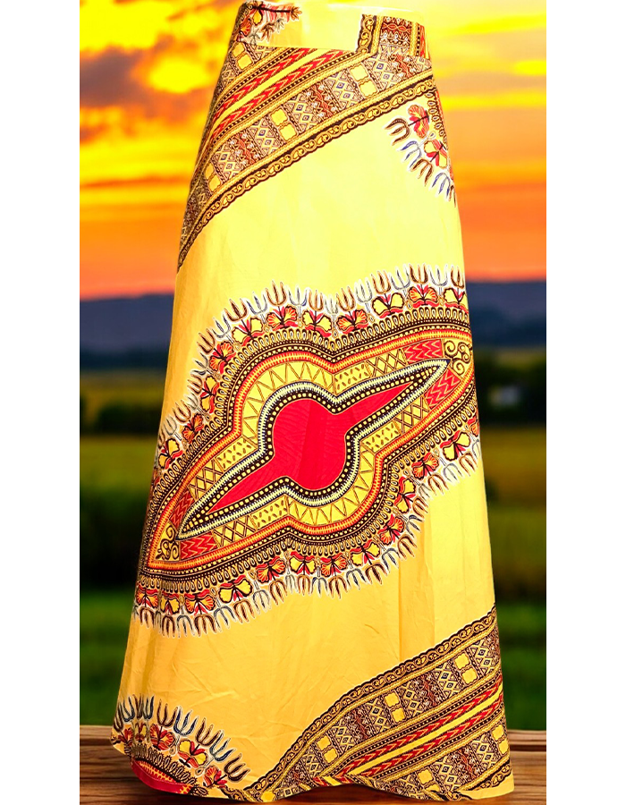 This stunning maxi skirt features a bold and colorful African print, perfect for making a statement. The flowing silhouette and comfortable elastic waistband ensure a flattering fit. Pair it with a simple top and statement jewelry for a chic and stylish look.