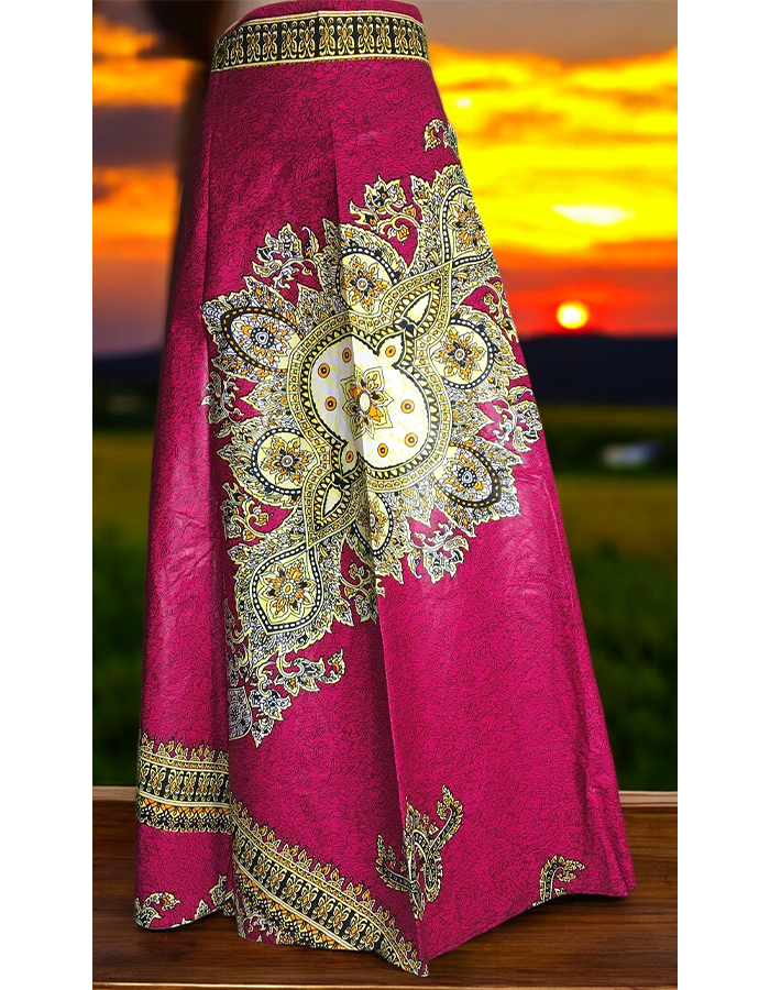 This stunning maxi skirt features a bold and colorful African print, perfect for making a statement. The flowing silhouette and comfortable elastic waistband ensure a flattering fit. Pair it with a simple top and statement jewelry for a chic and stylish look.