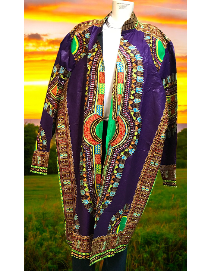 Step into cultural style with this stunning dashiki kimono, showcasing a rich tapestry of traditional African patterns in vivid color hues. The loose, flowing fit allows for versatile wear, whether layered over jeans for a casual look or paired with a dress for a bold statement. This eye-catching piece celebrates African heritage with intricate designs, perfect for adding a splash of color and elegance to any outfit. Embrace comfort and culture with this unique, statement-making kimono.